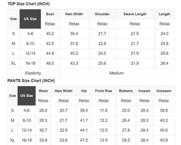 See size chart for approximate measurements.