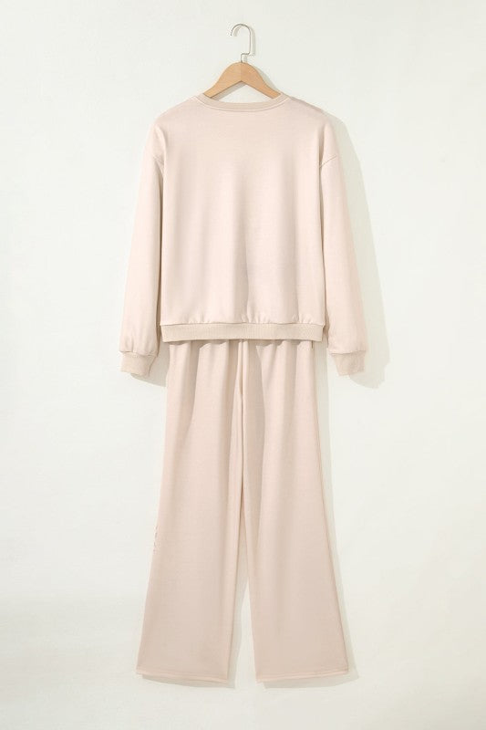 Celebrate the holiday season in comfort and style with this lounge set. Featuring a cozy drop shoulder round neck top adorned with charming graphics, this set offers a regular fit that suits most body types. The matching high-waist drawstring pants provide an adjustable, easy pull-on design for all-day comfort. Perfect for relaxing at home or casual festive gatherings, this lounge set combines playful holiday spirit with practical comfort. 100% Polyester