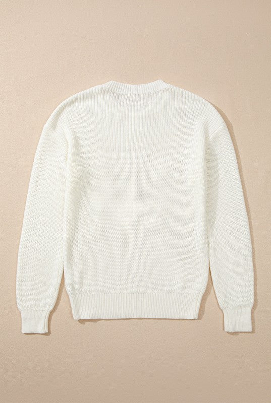This knitted sweater combines warmth and durability with festive style. Featuring a playful candy cane design and distinctive stripes, it delivers a stylish holiday look. The cheerful lettering adds a spirited touch, making it perfect for seasonal celebrations. Acrylic/Cotton